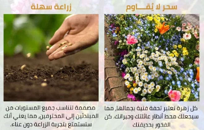 عادة تبدأ البذور بالنمو خلال 5 إلى 10 أيام، والزهور تطلع بعد كم أسبوع حسب الجو والعناية.